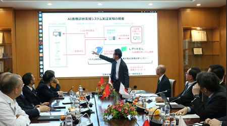 林芳正総務相が弊財団の画像診断AI実証を視察(ベトナム・ハノイ郵政病院)